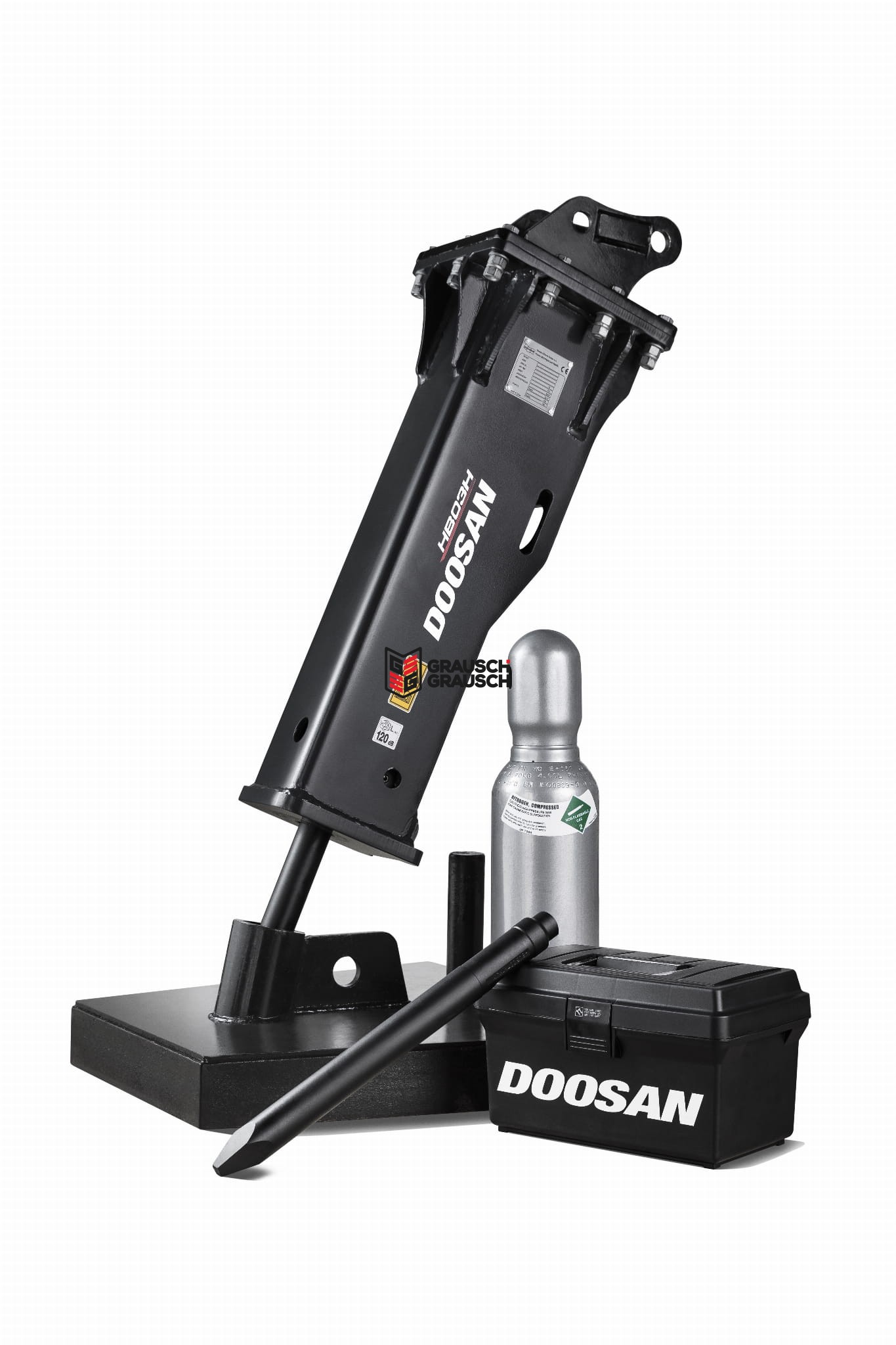 - W zestawie z młotem zapasowy komplet uszczelek, narzędzia, węże hydrauliczne oraz zbiornik do napełniania akumulatora gazowego